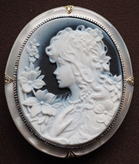ドイツで「芸術家」称号を受けたマイスターG.シュミット氏のメノウカメオ K18枠にダイヤを使った価値ある一品。 | 18金枠+ダイヤ | 40×30 | |